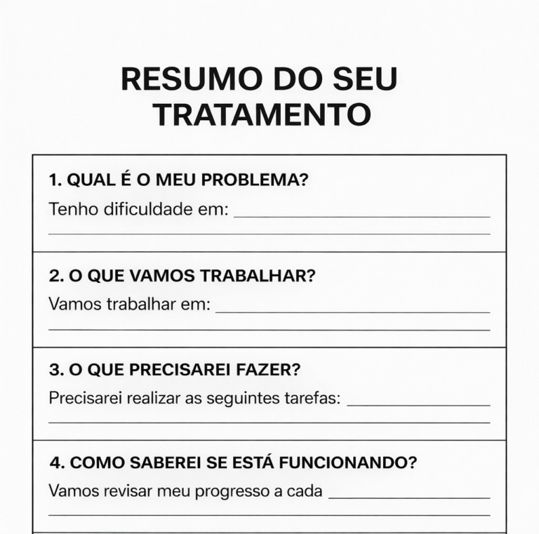 Contribui para maior compreensão, alinhamento de expectativas e engajamento no tratamento. Indicado para famílias, cuidadores e pacientes adultos.