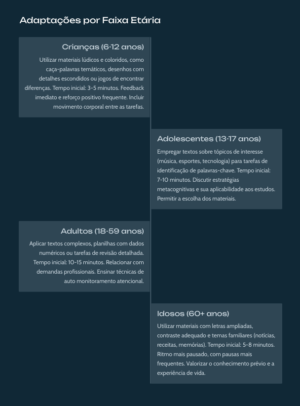Adaptações para crianças, adolescentes, adultos e idosos